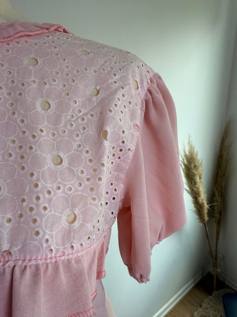Con mangas balloon, vuelitos y ese detalle de broderie que la hace única.