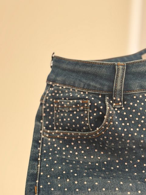 Jean de tiro medio y corte semi oxford, con apliques brillantes que lo hacen único. Fit perfecto y con el toque glam que levanta cualquier look, de día o de noche.